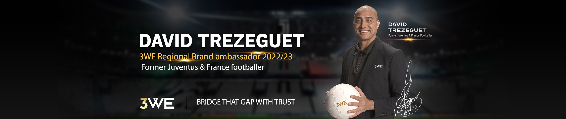 3WE Brand Ambassador 2022/233WE, one of Asia's biggest brands within the online gaming industry, secured the appointment of the French World Cup winner and Juventus Legend, David Trezeguet, as the Group's Brand Ambassador for South East Asia for the year 2022/23.